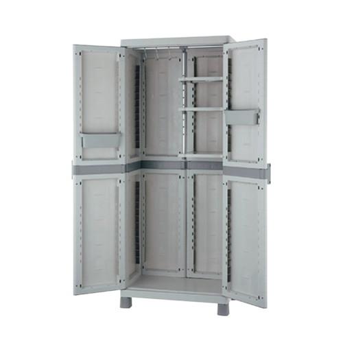 サビないプラスチック製。脚付きだから湿気が溜まりにくい。掃除用具入れや、物置として便利です。オフィスや商業施設、さまざまな場所で活躍します。