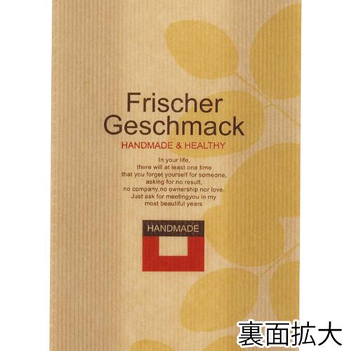 ●フィルムと紙を貼合した素材を使用したガゼット袋ですが、正面の一部分が透明フィルムのみになっているため、内容物を見せて包装できます。