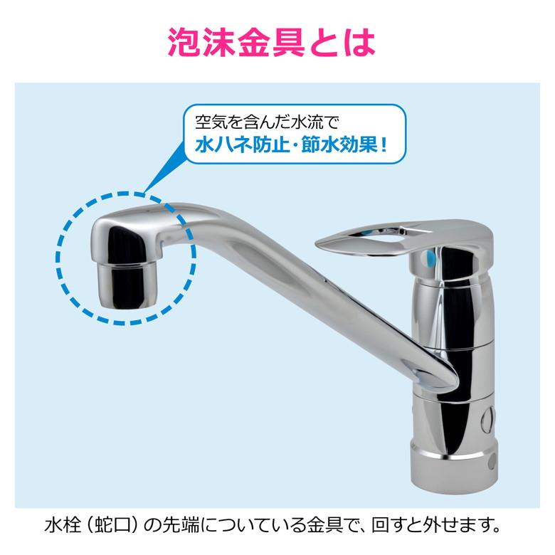 ●既存の混合栓のパイプ先端についている泡沫金具と交換できます。