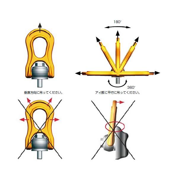 ●アイ部は180度回転し、特許取得済みのスプリング機構によりどのような角度でも固定できます。