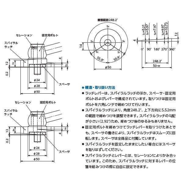 ●調整範囲は、角度248.2°、上下方向に5.52mmです。