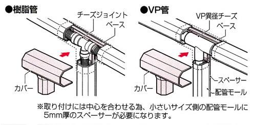 ●※取り付けには中心を合わせる為、小さいサイズ側の配管モールに5mm厚のスペーサーが必要になります。