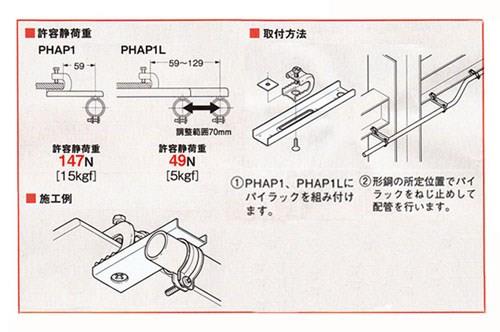 ●PHAP1Lは、配管位置の調整ができます。(調整範囲70mm)※板ナットは電気亜鉛めっきユニクローム処理