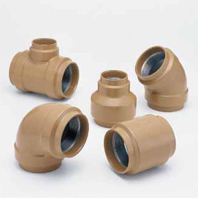 ●本継手は消火配管用に開発された外面被覆継手で、消火用外面被覆鋼管と合わせて使用することで、消火埋設配管における外面防食を行なう継手です。