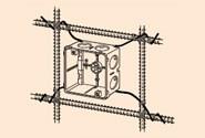 ●壁面、スラブの配筋を利用し、ボックスが簡単に取り付けられ、傾き防止ができます。(ボックスが真直ぐ固定できます。)