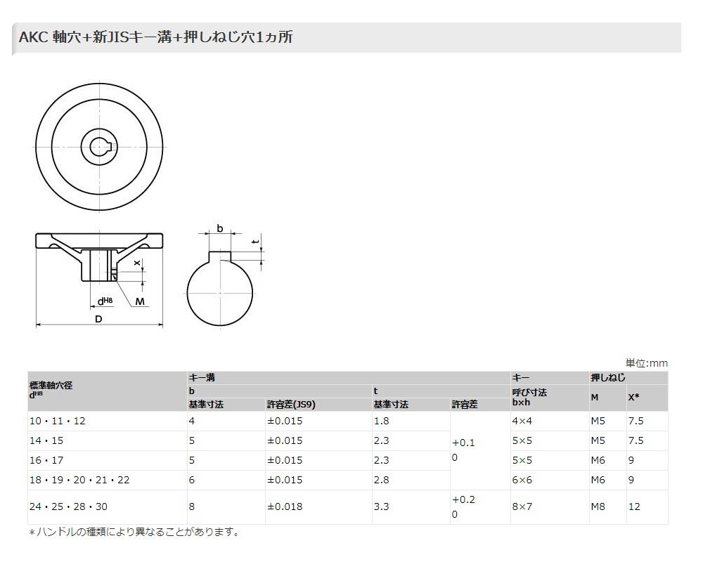 ●加工タイプ:AKC 軸穴+新JISキー溝+押しねじ穴1ヵ所