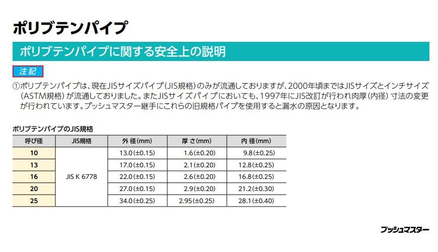 ●パイプ:ポリブテン(PB)