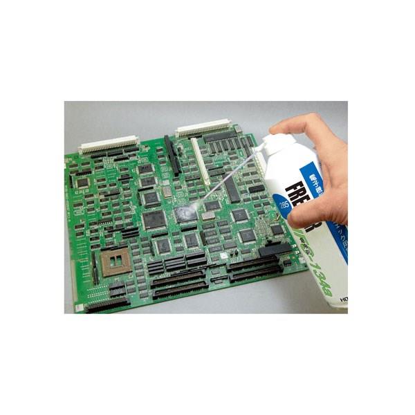●電子部品の温度変化による不良の発見や、性能変化のチェックをチェックするための急速冷却剤です。