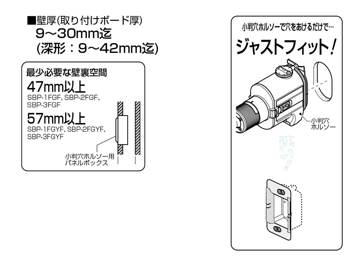 ●壁厚(取り付けボード厚)9〜42mm迄