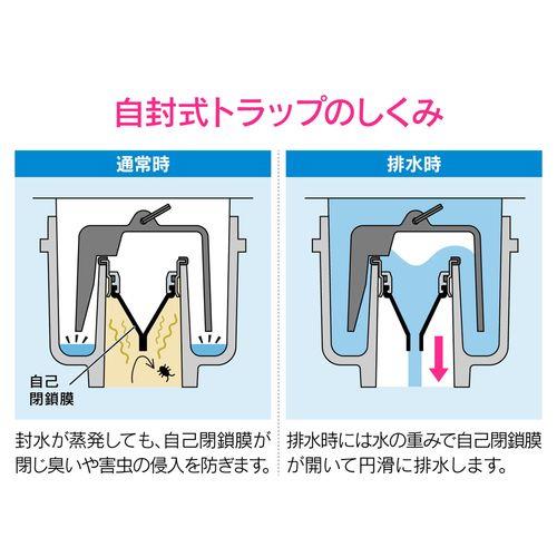 ●自封式構造で封水が不要なため、封水が蒸発してなくなっても臭気もれや害虫の侵入を防ぎます。