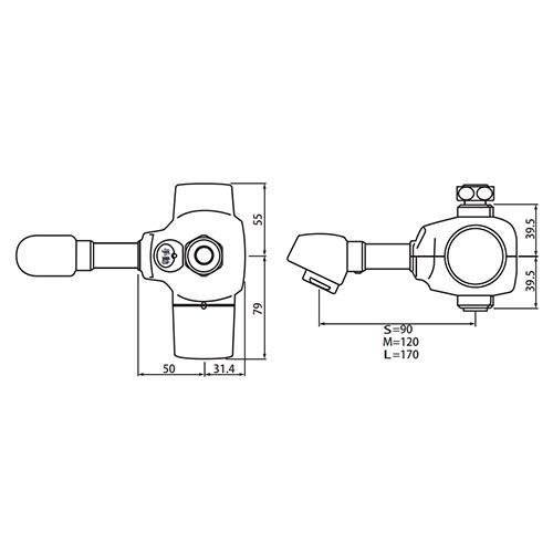 ●流入口〜吐水口の長さ:Sサイズ(90mm)