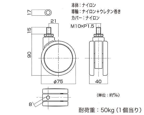 ●本体:ナイロン/車輪:ナイロン+ウレタン巻