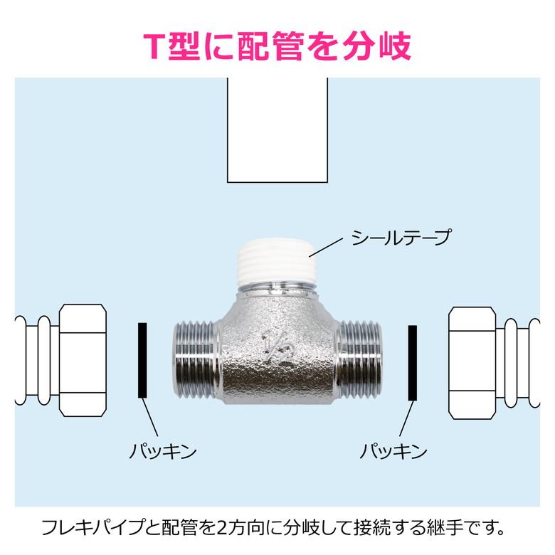 ●給水配管をT字に分岐ができるフレキチーズです。