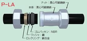 ●P-LA型は、ポリエチレン管専用で銅合金製と鋼製のロックリングを設けたものです。亜鉛めっき品とエポキシ樹脂コート品<コマコート>を用意しております。