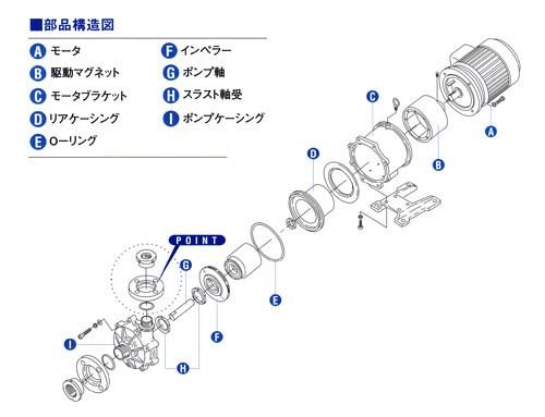 ●永久磁石によるマグネットドライブ方式により、液漏れを完全になくします。
