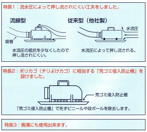 ●わずか5cmの水深で吸水出来ます。