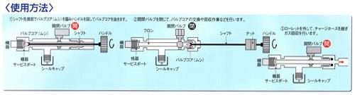 ●ガス反動圧吸収スリーブにより抵抗なく簡単にバルブコアが取り外せます。