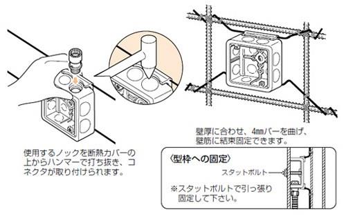 ●ノック付きです。使用するノックを断熱カバーの上からハンマー等で打ち抜けば、コネクタが簡単に取り付けられます。
