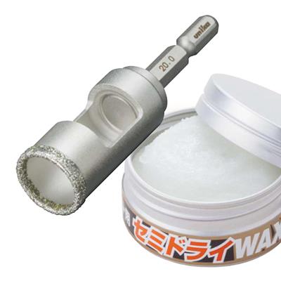 ●付属の独自の「セミドライワックス」をビット先端に塗布することで、磁器タイルを水なしで穴あけすることが可能になりました。