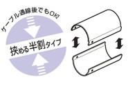 ●半割れタイプのスリーブでケーブルを挟む方式です。(ケーブル配線後でも施工できます)