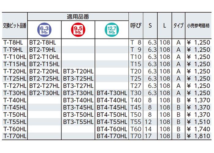 T 型いじり止めトルクスビット〈ロング〉 <T-THL> - T-T60HL