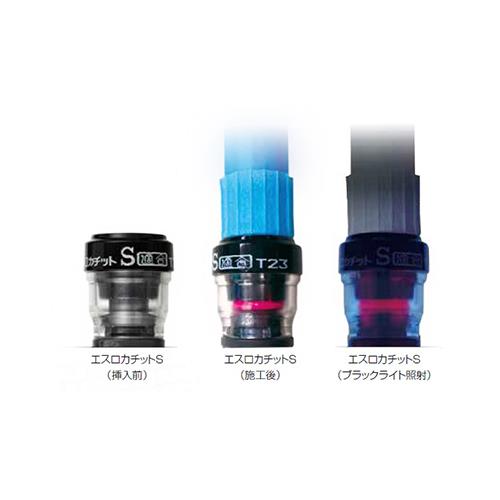●ブラックライト(紫外線ライト)を当てるとガイドが発光しますので、暗くても簡単に施工状態が確認できます。