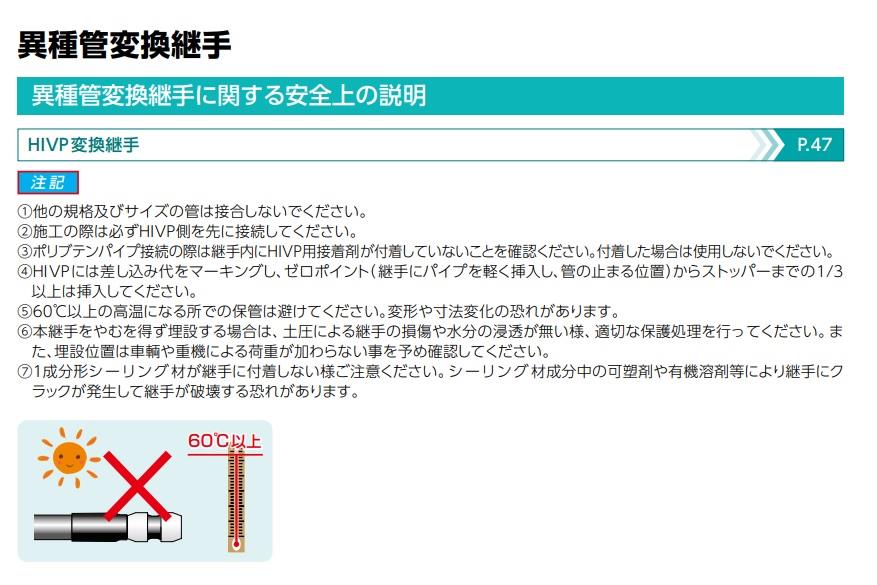 ●HIVP(水道用硬質ポリ塩化ビニル管)がポリブテンパイプと直接接続できます。
