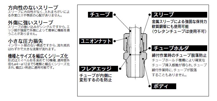 ●適用チューブ材質:ナイロンチューブ、ソフトナイロンチューブ、軟質銅管(C1220T-O)
