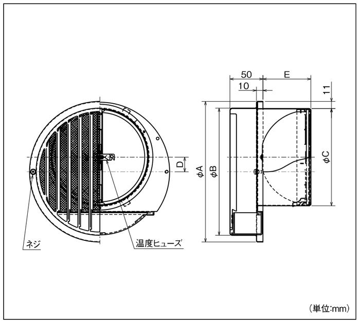 ドレン皿付ベントキャップ(ドレン皿内蔵タイプ・左吹き) 縦ギャラリ・網防火ダンパー付 <AT-BWSML> - AT-150BWSMLK
