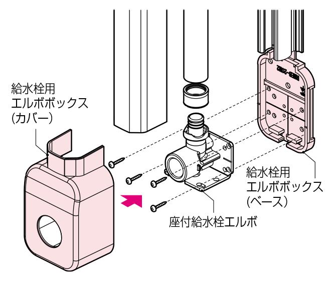 ●座付水栓エルボ(左右上背面取付用)の固定及び保護に使用します。