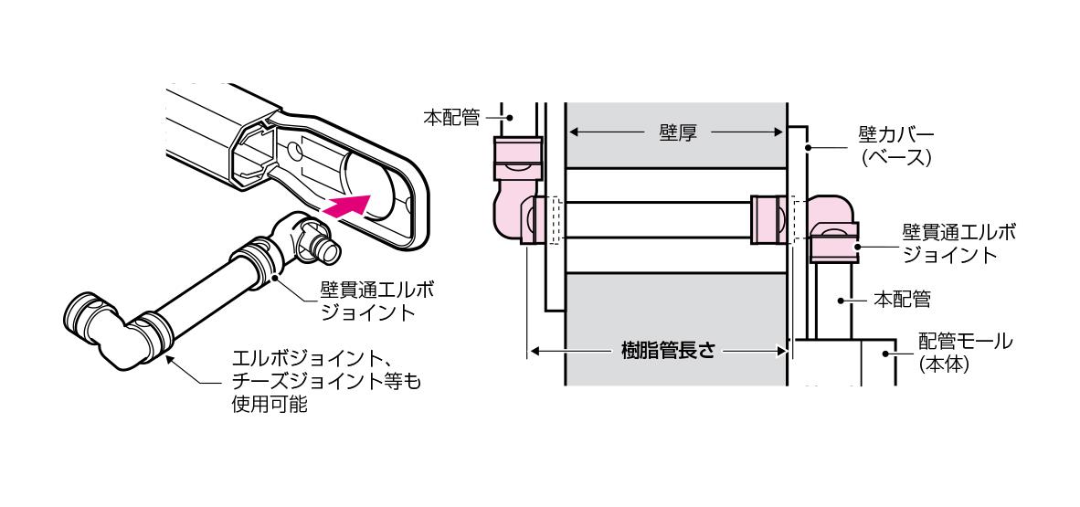 ●RMモール配管の際の壁貫通箇所に使用します。