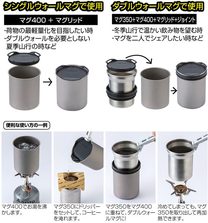 ●マグ350とマグ400を重ねることで保温、保冷機能を確保できます。