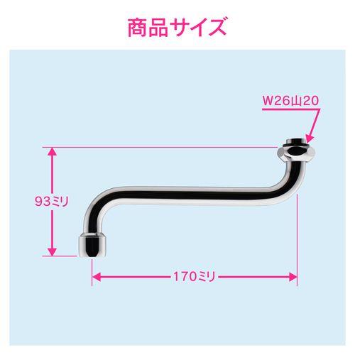 泡沫Sパイプ 水ハネ防止 (長さ170ミリ 交換 外径16ミリ W26山20ネジ) GA-HA018 - GA-HA018