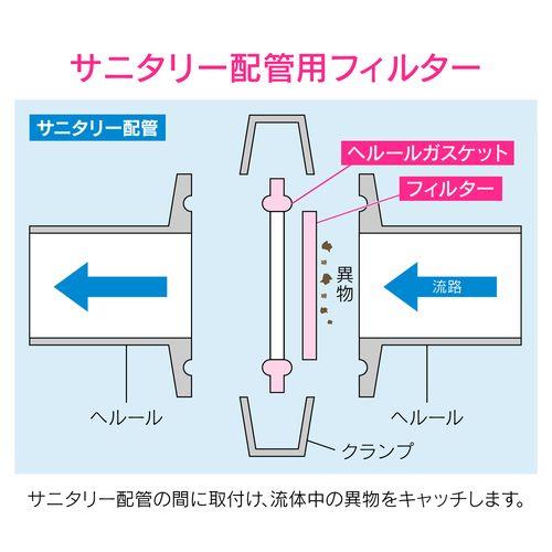 ●ヘルール継手の間に取付け、ゴミを除去し異物混入を防ぎます。