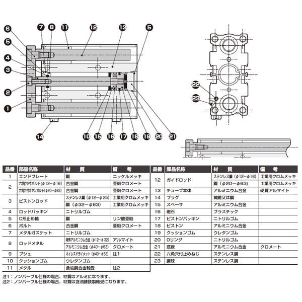 ガイド付シリンダ すべり軸受 <STG-M-12-1> - STG-M-12-100-T3H-H