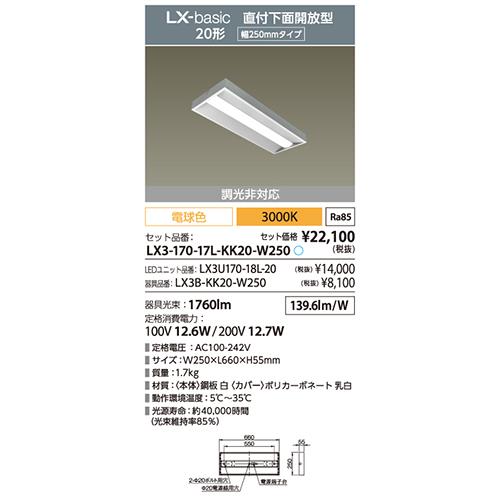 ラインルクス 直付下面開放型 20形 - LX3-170-17L-KK20-W250