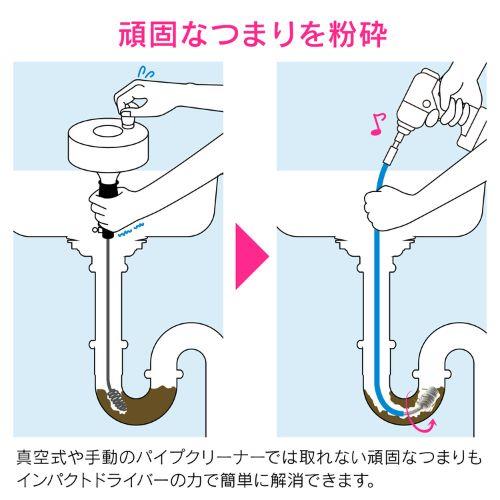【●インパクトドライバーに装着して排水管のつまりを簡単に掃除できるパイプクリーナーです。】