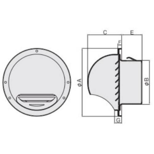 丸型フード付換気口(開口部:小)/網なし <B-MVS> - B-100MVS