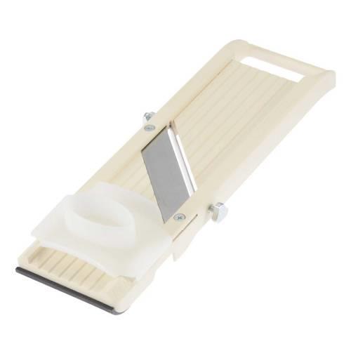 ●大きくなった厚さ調節ダイヤルで、板を水平に保ち、野菜を均一にスライスします。