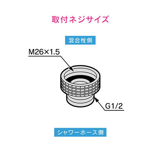●取付ネジ 混合栓側メスネジ(M26X1.5) X シャワーホース側オスネジ(G1/2)