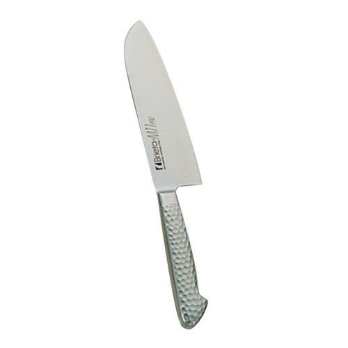 刃部は、モリブデンバナジウム特殊鋼を用い、切れ味、長切れを重視。 ●ハンドル部は、18-8ステンレススチールモナカハンドル。ガラスビーズショット仕上げによる、手触りのソフト化、滑り防止。刃部とハンドル部の(溶接による)一体化で、雑菌等の付着防止など、従来の木ハンドルの衛生面での問題を克服しました。