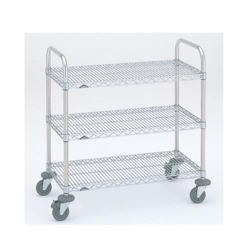 棚板:スチールワイヤー、クロームメッキ、抗菌クリアコーティング仕上げ(防錆加工)/ポール:SUS304/キャスター:エラストマー車