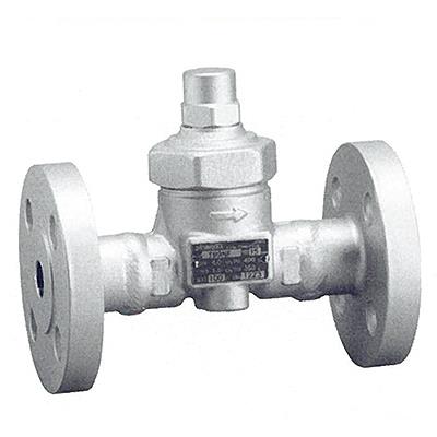 ●QC(Quick-Closemechanism)機構(特許):復水がトラップ本体内から弁孔へ流れる際、バイメタル板の膨張力で押し下げられたバルブにより、本体内と弁孔を遮断するガイドに設けた流路穴が、徐々に塞がれて行く構造設計になっています。徐々に流路穴がバルブによって塞がれて行きますので、弁口を通過する復水の流速が弱められ、バイメタルがより迅速に熱せられ、閉弁を促進します。