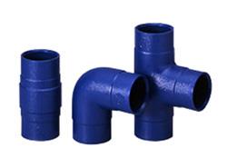 ●ねじ込み式可鍛鋳鉄製管継手(JIS B2301)の内外面を塩化ビニル樹脂で同時に一体成形したコア内蔵型・管端防食継手です。