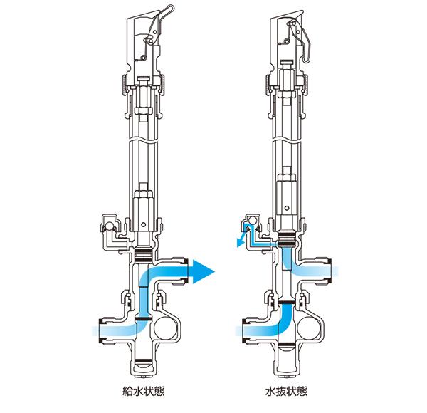 ●損失水頭を最小限におさえた水抜栓です。高層階直結給水やヘッダー配管給水にも適しています。