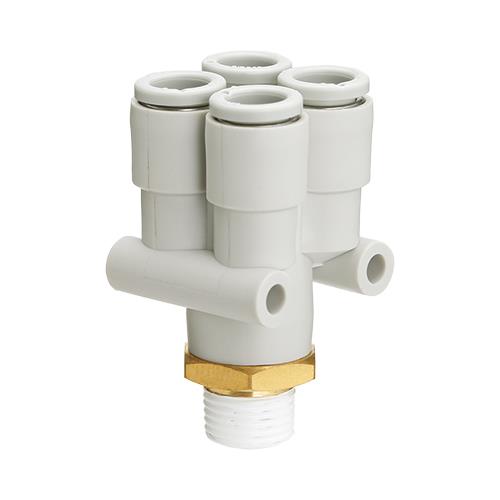 ●めねじ部からの同一方向の4分岐配管に使用。