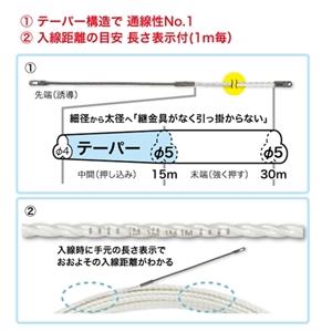 ●テーパー構造ロッドは継金具がなく、入線時に引っ掛からない