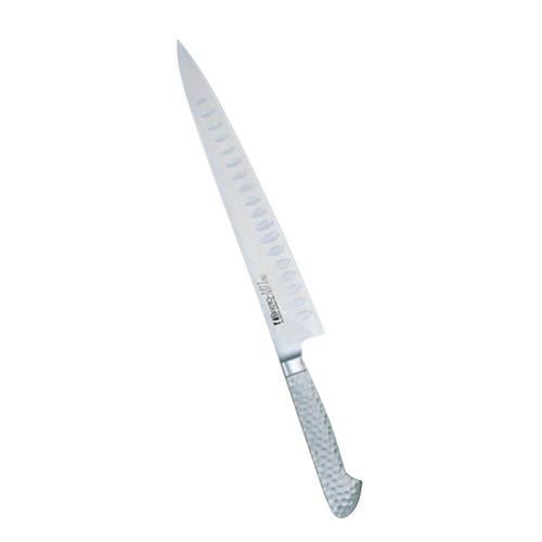 刃部は、モリブデンバナジウム特殊鋼を用い、切れ味、長切れを重視。 ●ハンドル部は、18-8ステンレススチールモナカハンドル。ガラスビーズショット仕上げによる、手触りのソフト化、滑り防止。刃部とハンドル部の(溶接による)一体化で、雑菌等の付着防止など、従来の木ハンドルの衛生面での問題を克服しました。